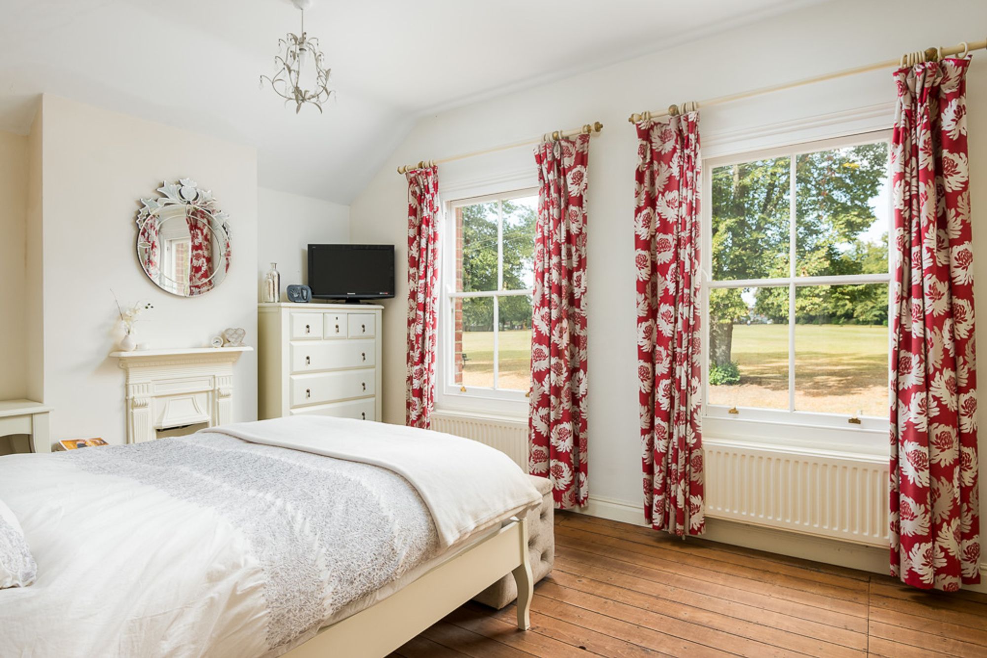 The principal bedroom is a truly impressive space, featuring two elegant sash windows that frame sweeping views of the recreation ground, with its lawns and mature trees creating a countryside feel right in the heart of town. Wooden floors and neutral décor keep the room calm and refined, while a cream Victorian fireplace provides a beautiful focal point that adds character and charm. Generous proportions and abundant natural light make this a standout room on the first floor.