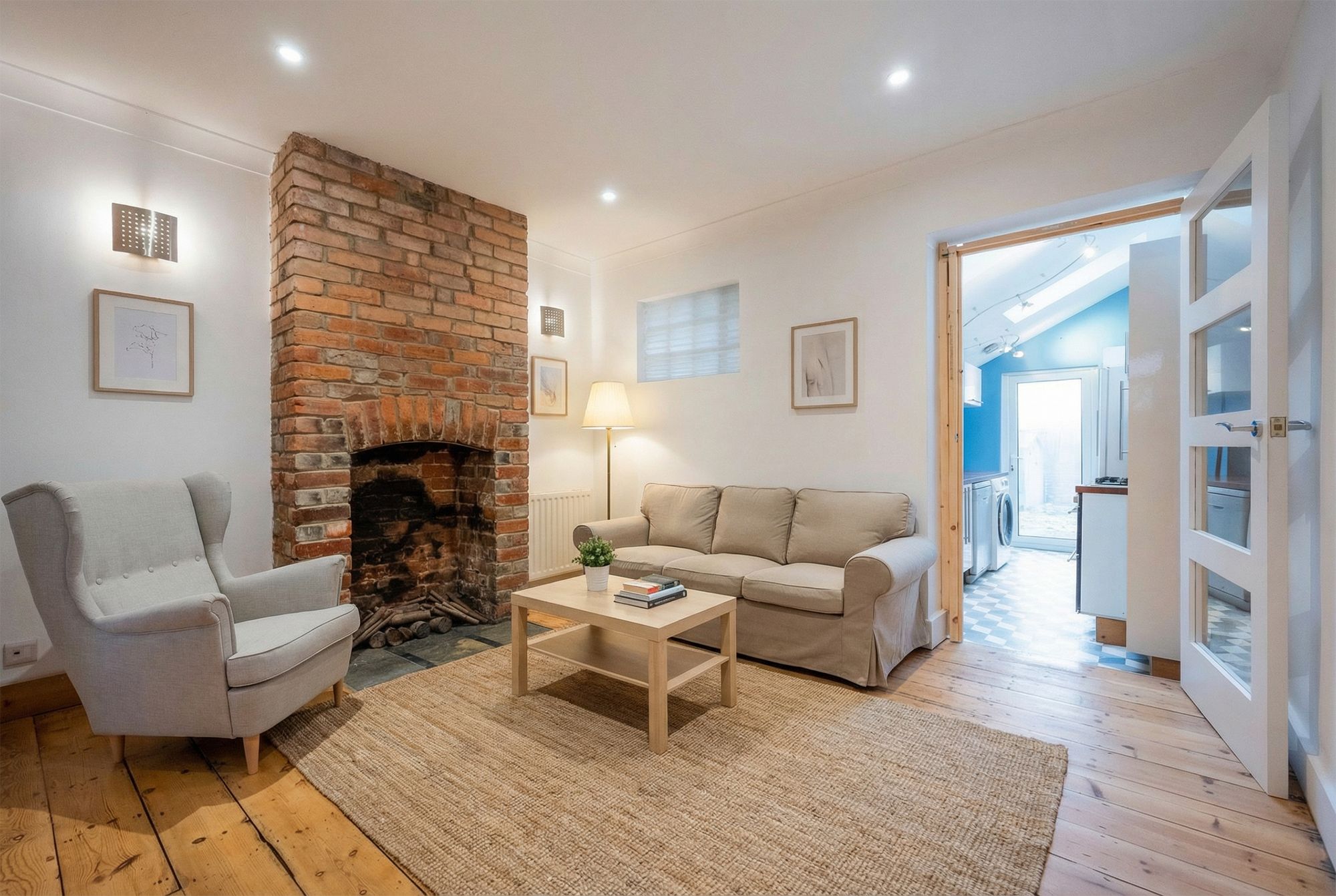 • Living Room with stripped floorboards