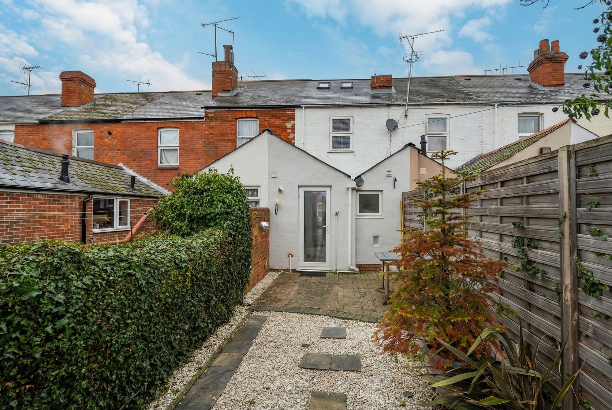 Completing the home is a private, low-maintenance rear garden. The space features a blend of paving and shingle, connected by a neat path that leads to a handy garden shed for additional storage.