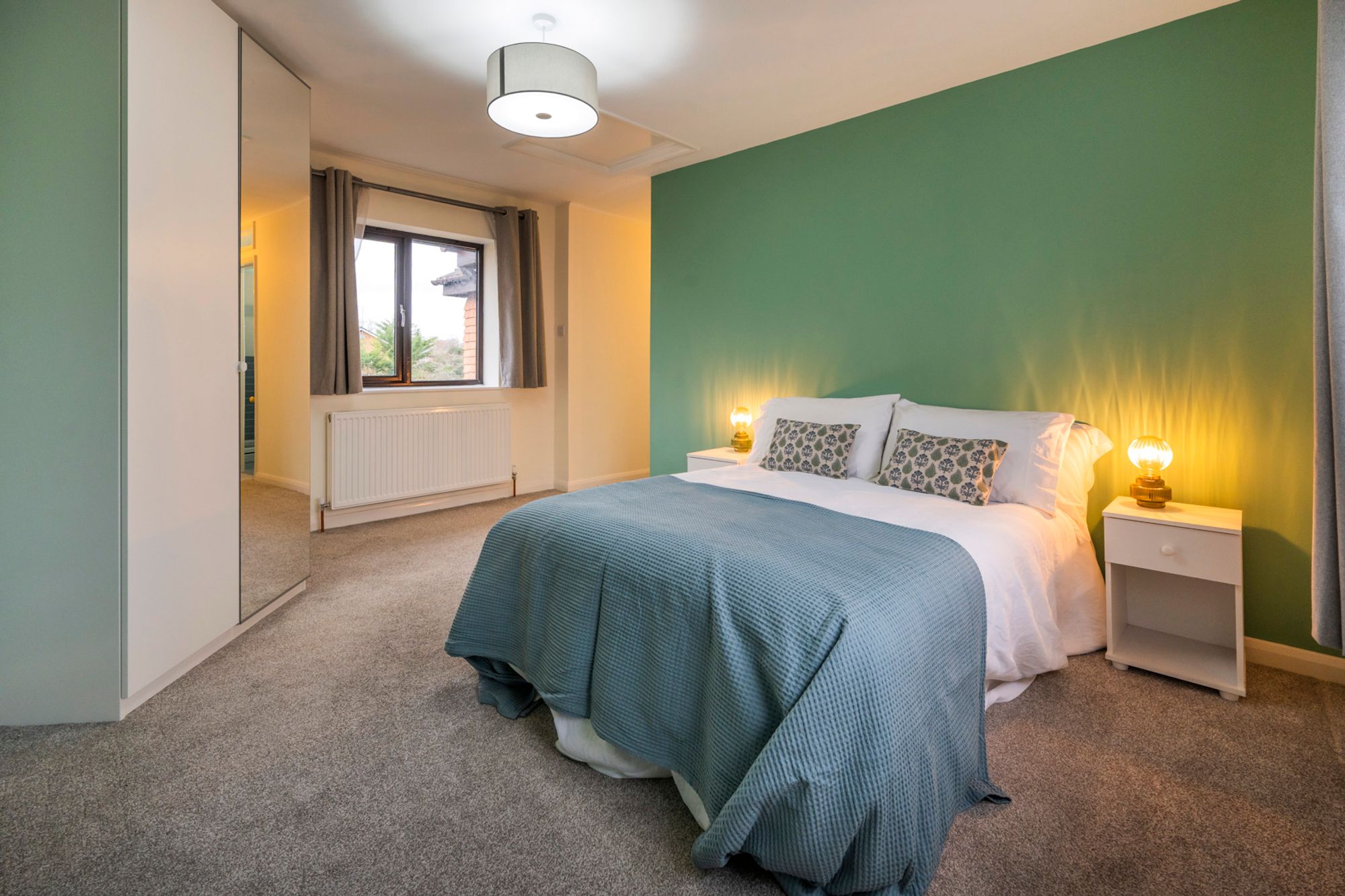 Both additional bedrooms are peaceful havens, decorated with calming green feature walls. Bedroom Three provides a comfortable double room, while Bedroom Four offers versatility as a single bedroom, dressing room, or home office.